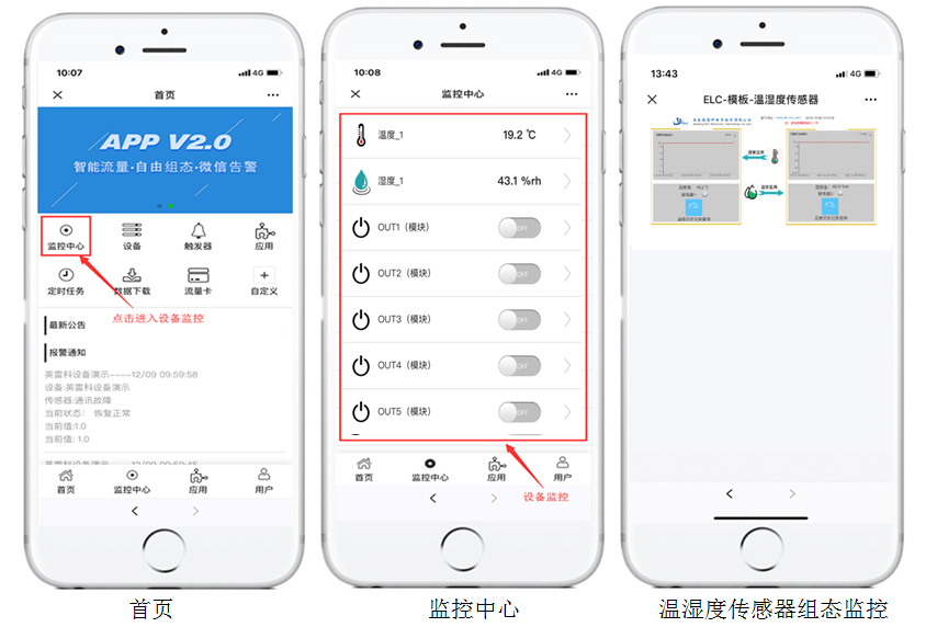3、可通過聯(lián)網(wǎng)的電腦、手機(jī)監(jiān)控溫濕度,查看設(shè)備實(shí)時(shí)和歷史溫濕、繼電器動(dòng)作記錄,修改保護(hù)參數(shù),微信實(shí)時(shí)推送報(bào)警信息。