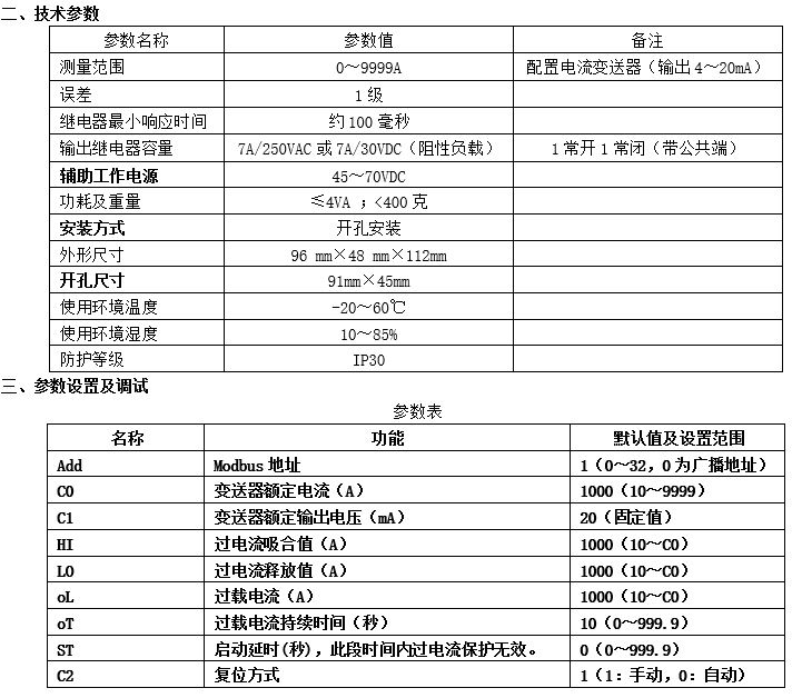 電流、電壓綜合保護(hù)。ModbuRTU協(xié)議,遠(yuǎn)程監(jiān)控