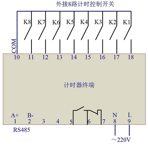 8路計時:計時范圍:0~500000000秒,8路開關量控制獨立計時,僅第一路帶輸出繼電器。