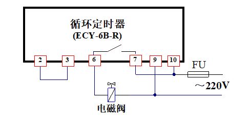 利用我公司單路循環(huán)定時(shí)器,可以在需要周期性的灌溉場景下,實(shí)現(xiàn)自動(dòng)噴淋控制,即設(shè)定噴淋時(shí)長和停止間隙時(shí)長,自動(dòng)循環(huán)運(yùn)行,循環(huán)工作方式可以設(shè)定無限循環(huán)和有限次數(shù)循環(huán)。參考電路如下: