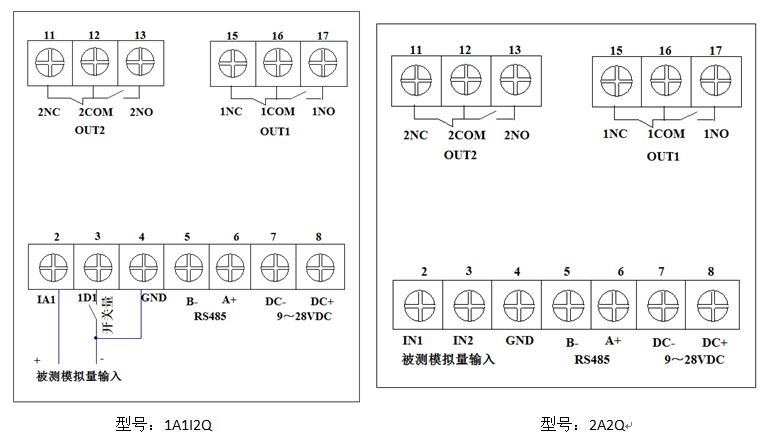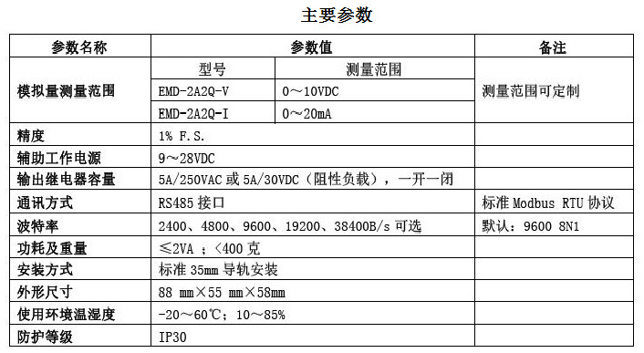 二路輸入模擬量2路輸出開關(guān)量。